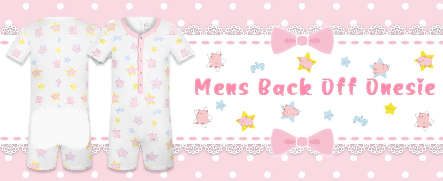 Landofgenie Mens Short Sleeve Onesie Piece Pajama - Piggy
