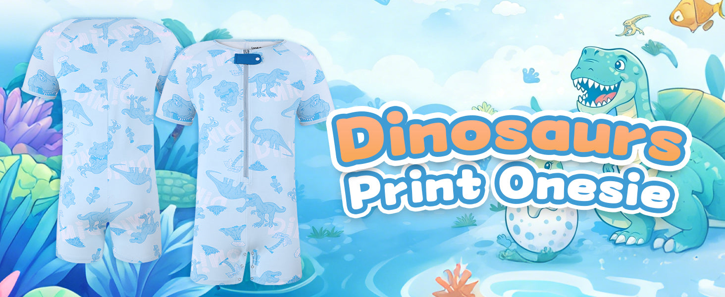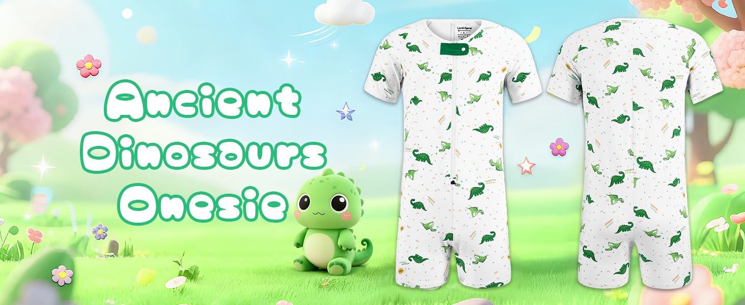 Landofgenie Mens Short Sleeve Onesie Piece Pajama - Ancient Dinosaurs