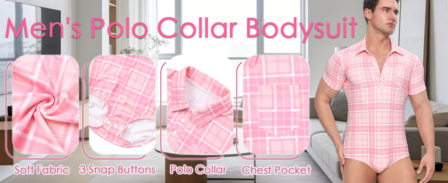 Landofgenie Mens Pink grid jumpsuit